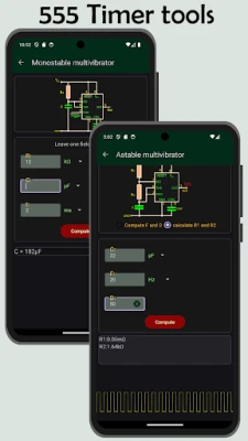 Electrocal: Circuit Calculator একটি পরিষ্কার ইন্টারফেস এবং স্বচ্ছ ইনপুট-আউটপুটের উপর জোর দেয়, যা ব্যবহারকারীদের জন্য গণনাগুলিকে সহজে বোধগম্য করে তোলে। এটি ৫৫৫ টাইমার সার্কিট, ডিবিএম-টু-ওয়াট রূপান্তর, এবং আরএফ টুলস যেমন ইম্পিড্যান্স ও স্কিন ডেপথ গণনার পাশাপাশি পিসিবি ট্রেস প্রস্থ এবং ট্রান্সফরমার ডিজাইনের মতো ব্যবহারিক সরঞ্জামও সরবরাহ করে। জেনার এবং অ্যাডজাস্টেবল রেগুলেটর ডিজাইন সহ পাওয়ার রেগুলেশনের বিভিন্ন সরঞ্জাম একে সম্পূর্ণ করে তোলে। শেখা, শেখানো বা পেশাদার ডিজাইন – যে উদ্দেশ্যেই হোক না কেন, Electrocal: Circuit Calculator আপনার সার্কিট বিশ্লেষণের কর্মপ্রবাহকে নিয়ন্ত্রণ করতে একটি অপরিহার্য হাতিয়ার।