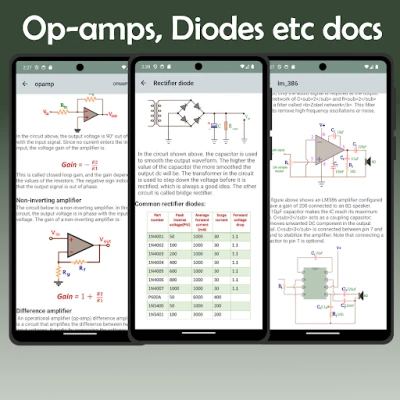 শিক্ষার্থী, প্রকৌশলী এবং শৌখিনদের জন্য একটি সম্পূর্ণ ইলেকট্রনিক্স সমাধান। এই টুলকিটে একটি বিল্ট-ইন কম্পোনেন্ট রেফারেন্স গাইড রয়েছে যা দ্রুত শিখতে সাহায্য করে। এর নির্ভুল ইলেকট্রনিক্স ক্যালকুলেটর স্যুট বাস্তব সার্কিট সমস্যার সমাধানে পারদর্শী।