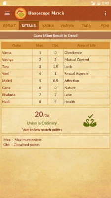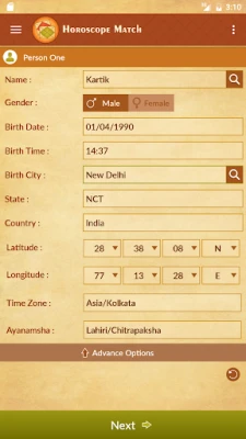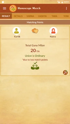 "Horoscope Match" অ্যাপটি প্রাচীন জ্যোতিষশাস্ত্র অনুসারে বিবাহপূর্ব সঙ্গীর সামঞ্জস্য পরীক্ষা করে। ভারতীয় হিন্দু পরিবারগুলিতে সম্পর্ক স্থাপনের আগে বর ও কনের কুষ্ঠি বিচারের ঐতিহ্য মেনে এটি তৈরি করা হয়েছে।